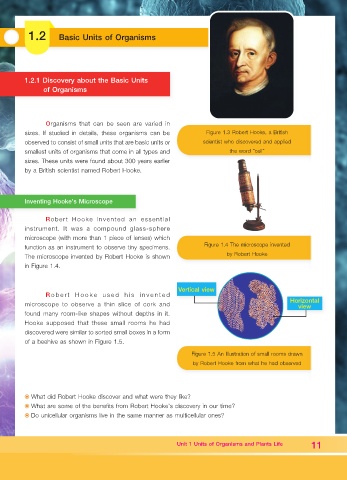 sizes. If studied in details, these organisms can be Figure 1.3 Robert Hooke, a British