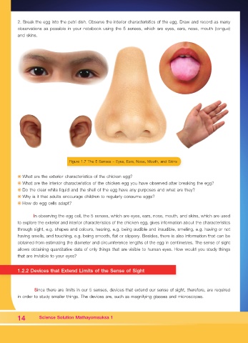 In observing the egg cell, the 5 senses, which are eyes, ears, nose, mouth, and skins, which are used