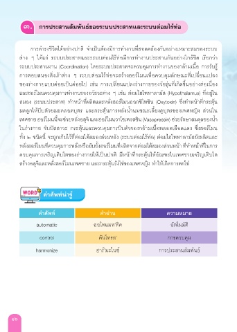 การดารงชีวิตได้อย่างปกต จาเป็นต้องมีการทางานท่สอดคล้องกันอย่างเหมาะสมของระบบ