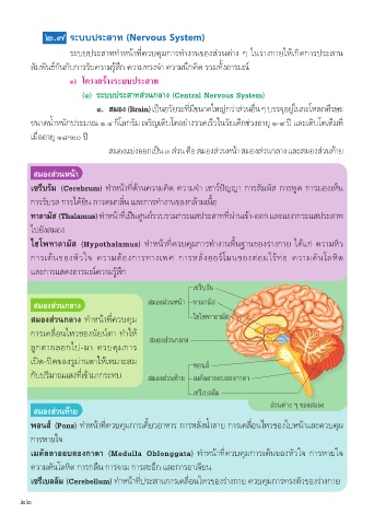 ๑. สมอง (Brain) เป็นอวัยวะท่มีขนาดใหญ่กว่าส่วนอ่น ๆ บรรจุอยู่ในกะโหลกศีรษะ
