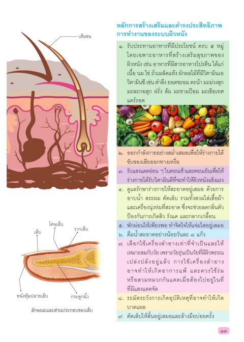 ผิวหนัง เช่น อาหารที่มีสารอาหารโปรตีน ได้แก่