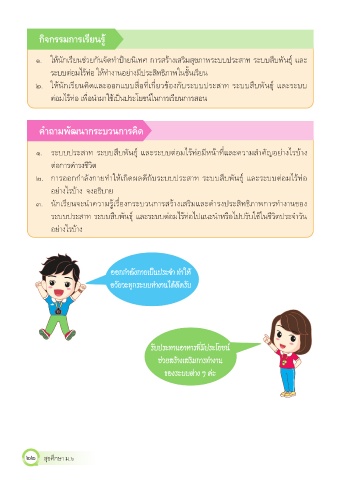 ๒. ให้นักเรียนคิดและออกแบบสื่อท่เกี่ยวข้องกับระบบประสาท ระบบสืบพันธุ และระบบ
