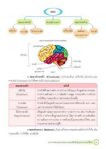 สมองส่วนหน้า สมองส่วนกลาง สมองส่วนท้าย