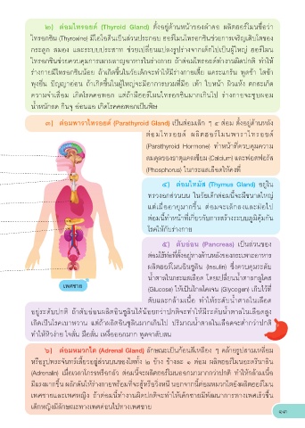 ๒) ต่อมไทรอยด (Thyroid Gland) ตงอยดานหนาของลำคอ ผลตฮอรโมนชอวา