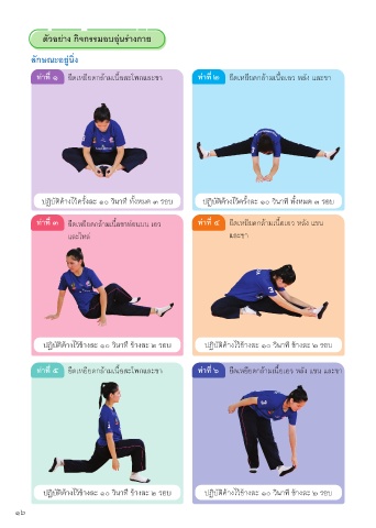 ท่าที่ ๑ ยดเห์ยยดกี่ลื่้ามเน้อสะโพกี่แลื่ะขา ท่าท ๒ ยดเห์ยยดกี่ลื่้ามเน้อเอวิ ห์ลื่ัง แลื่ะขา