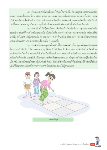 ๕) ทำ่าต่อไปนั้นให้ผู้เล่นปิดตา เดินทำีละก้าวโดยไม่ต้องวางลูกเกยบนหลังเทำ้า
