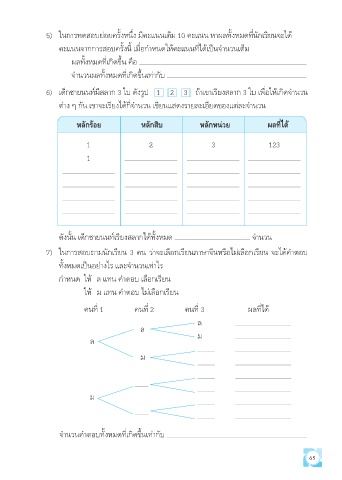 6) เด็กชายนนท์มีสลาก 3 ใบ ดังรูป 1 2 3 ถ้าเขาเรียงสลาก 3 ใบ เพ่อให้เกิดจำานวน