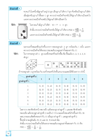 หมายถึง แต้มของลูกเต๋าลูกท 2 จะเห็นว่า จำานวนผลท้งหมดท่เกิดข้นเท่ากับ 36