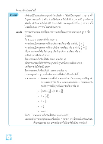 หงายแต้ม 3 หรือ 6) + (ผลตอบแทนที่เสีย Ö ความน่าจะเป็น