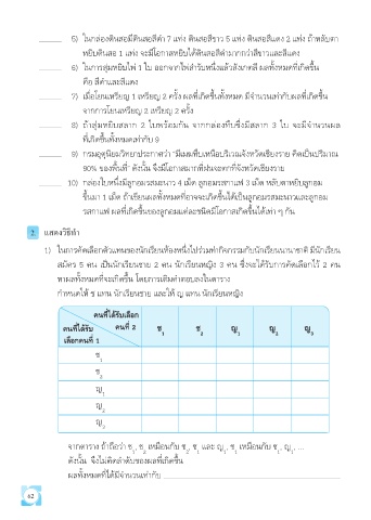 8) ถ้าสุ่มหยิบสลาก 2 ใบพร้อมกัน จากกล่องทึบซ่งมีสลาก 3 ใบ จะมีจำานวนผล