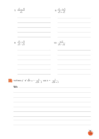 7) √a + √3 8) √5 - 2√3 √a √3 + √2 2√a 9) √2 + √3 10) √b - √a √2 - √3 3. ห�ค่�ของ a - b เมื่อ a = 1 และ b = 1 2 2 √10 - 3 √10 + 3 วิธีทำ� 19