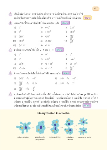 แบงเซลลทั้งหมด 10 ครั้ง อะมีบาจะมีทั้งหมดกี่เซลล (ตอบในรูปเลขยกกําลัง) ฝ ึ ฝกฝน