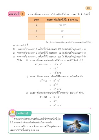 3) ระยะทางที่ยานอวกาศ C เคลื่อนที่ไดในระยะเวลา 125 วินาที (ตอบในรูปเลขยกกําลัง)