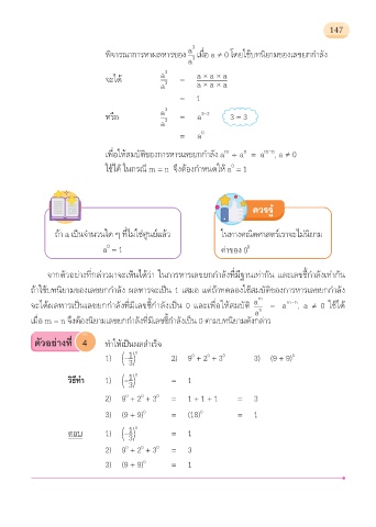 จะไดผลหารเปนเลขยกกําลังท่มีเลขช้กําลังเปน 0 และเพ่อใหสมบัติ = a , a ≠ 0 ใชได