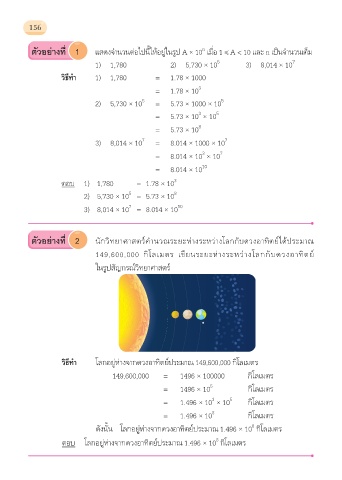 ตัวอยางที่ 2 นักวิทยาศาสตรคํานวณระยะหางระหวางโลกกับดวงอาทิตยไดประมาณ