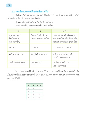 2.2 การเชื่อมประพจน์ด้วยตัวเชื่อม “หรือ”
