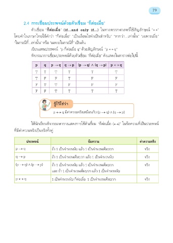2.4 การเชื่อมประพจน์ด้วยตัวเชื่อม “ก็ต่อเมื่อ”