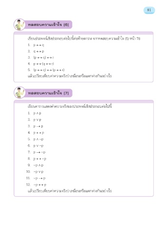 เขียนประพจน์เชิงประกอบต่อไปนี้ต่อท้ายตาราง จากทดสอบความเข้าใจ (5) หน้า 78