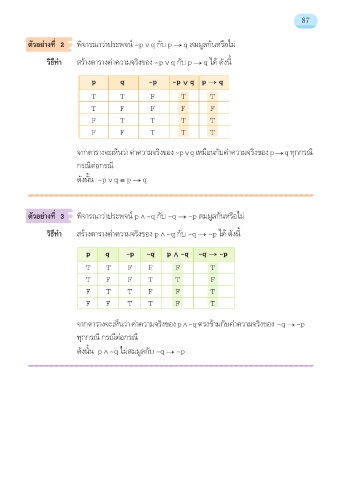 จากตารางจะเห็นว่า ค่าความจริงของ ~p q เหมือนกับค่าความจริงของ p q ทุกกรณี