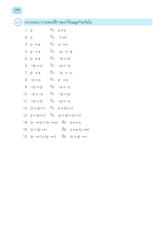 3.2 ตรวจสอบว่าประพจน์ที่กำาหนดให้สมมูลกันหรือไม่