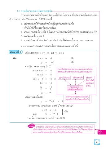แล้วร่วมกันแสดงความคิดเห็นว่าการแก้ระบบสมการโดยวิธีนี้มีข้อดีอย่างไร (ให้คำาตอบที่ชัดเจน
