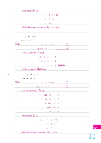 ดังนั้น คำ�าตอบของระบบสมการ คำือ (0, 5)