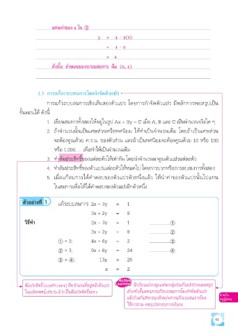 ในแต่ละพจน์ เช่น 5x มี 5 เป็นสัมประสิทธิ์ของ x เกี่ยวกับขั้นตอนการแก้ระบบสมการโดยกำาจัดตัวแปร สำ�หรับ