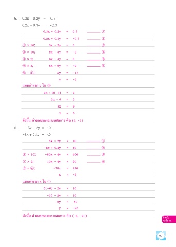 ดังนั้น คำ�าตอบของระบบสมการ คำือ (-6, -20) สำ�หรับ