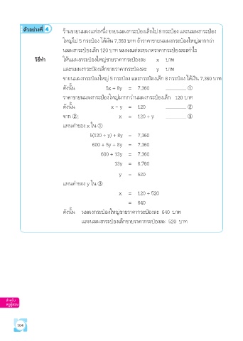 ดังนั้น 5x + 8y = 7,360 ➀