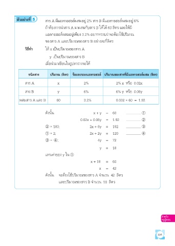 ตัวอย่างที่ 5 สาร A มีแอลกอฮอล์ผสมอยู่ 2% สาร B มีแอลกอฮอล์ผสมอยู่ 6%