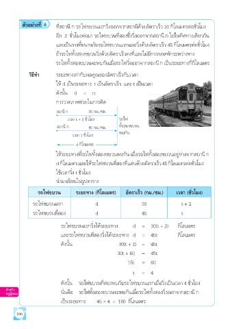 รถไฟขบวนแรกวิ่งได้ระยะทาง d = 30(t + 2) กิโลเมตร