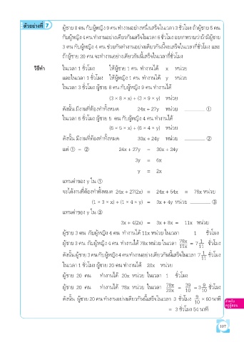 ผู้ชาย 3 คน กับผู้หญิง 4 คน ทำางานได้ 78x หน่วย ในเวลา 78x = 7 ชั่วโมง