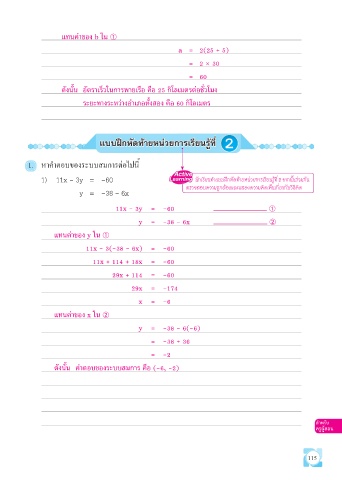 1) 11x - 3y = -60 นักเรียนทำาแบบฝึกหัดท้ายหน่วยการเรียนรู้ที่ 2 จากนั้นร่วมกัน