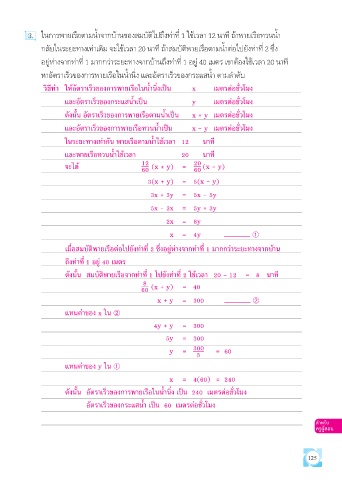 ดังนั้น อัตราเร็วของการพายเรือตามน�้าเป็น x + y เมตรต่อชั่วโมง