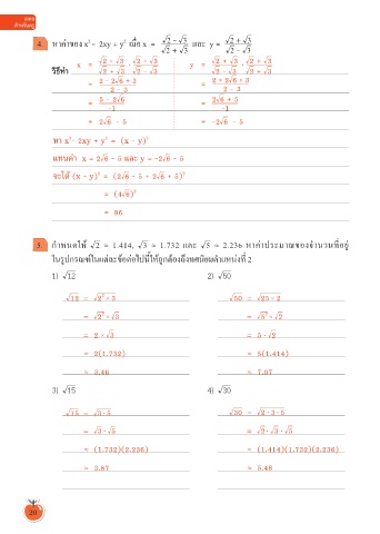 4. ห�ค่�ของ x - 2xy + y เมื่อ x = √2 - √3 และ y = √2 + √3