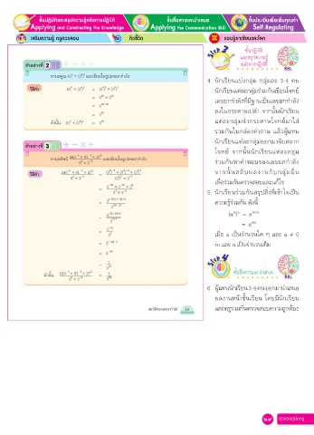 วิธีทำ� 81 × (3 ) = (3 ) × (3 ) นักเรียนแต่ละกล่มร่วมกันเขียนโจทย์