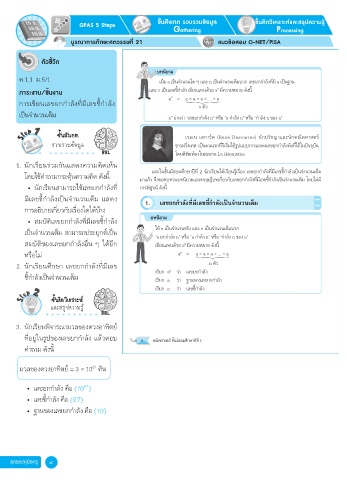 โดยใช้ค�าถามกระตุ้นความคิด ดังนี้ มาแล้ว จึงขอทบทวนบทนิยามและทฤษฎีบทเกี่ยวกับเลขยกกำาลังที่มีเลขชี้กำาลังเป็นจำานวนเต็ม โดยไม่มี