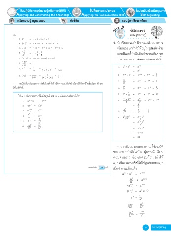 สมบัติเกี่ยวกับเลขยกกำาลังท่มีเลขชี้กำาลังเป็นจานวนเต็มท่นักเรียนได้เรียนร้ในช้นมัธยมศึกษา 3