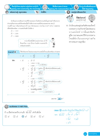 กรณฑ์ที่ 2 ของ 2 หรือค่าหลักของรากที่ 2 ของ 2 มีค่าประมาณ 1.4142 โดย 1.4142 เท่ากับ 1.99996164 15. นักเรียนแต่ละคู่ร่วมกันพิจารณาโจทย์