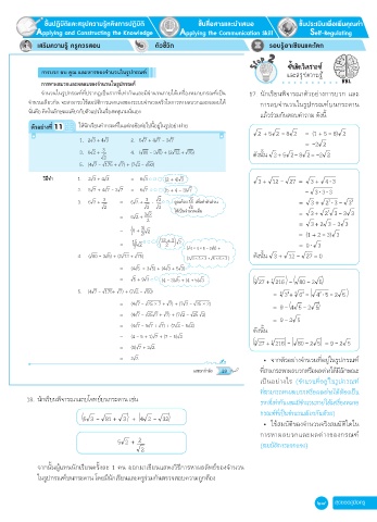 18. นักเรียนพิจารณาแถบโจทย์บนกระดาน เช่น รากท่เท่ากัน และมีจ�านวนภายใต้เคร่องหมาย