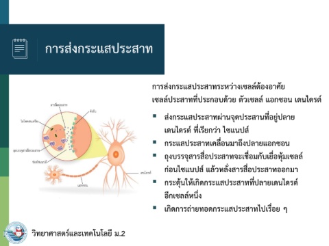 ▪ ส่งกระแสประสาทผ่านจุดประสานที่อยู่ปลาย