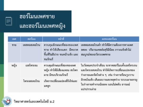 เพศ ฮอร์โมน หน้าที่ ผลของฮอร์โมน