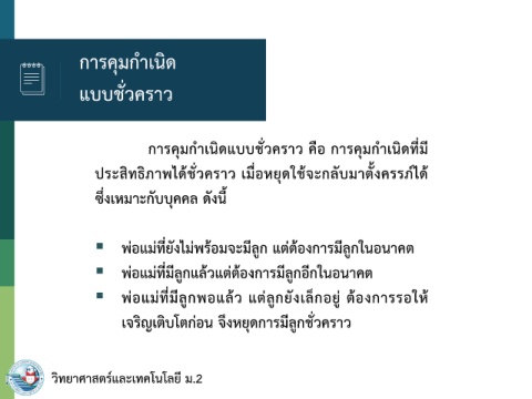 การคุมก าเนิดแบบชั่วคราว คือ การคุมก าเนิดที่มี
