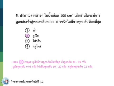 เฉลย 2 เหตุผล ยูเรียมีการดูดกลับน้อยที่สุด น้ าดูดกลับ 90 - 93 กรัม