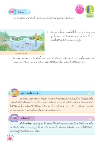 ในท้องถิ่นท่นักเรียนสนใจ จากนั้นระดมความคิดว่าในระบบนิเวศท่เลือกสํารวจ ประกอบด้วย