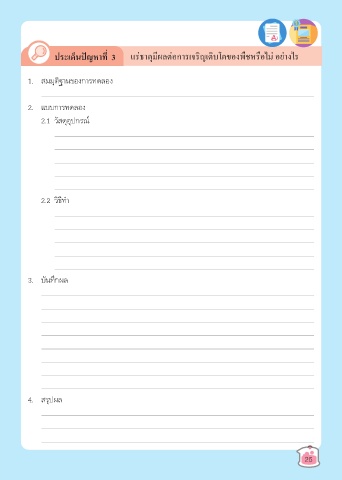 ประเด็นปัญหาที่ 3 แร่ธาตุมีผลต่อการเจริญเติบโตของพืชหรือไม่ อย่างไร 1. สมมุติฐานของการทดลอง 2. แบบการทดลอง 2.1 วัสดุอุปกรณ์ 2.2 วิธีทํา 3. บันทึกผล 4. สรุปผล 25