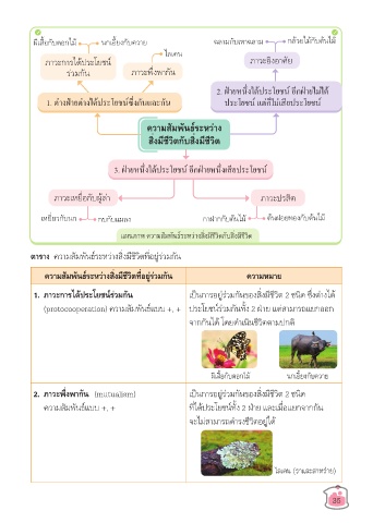 ตาราง ความสัมพันธ์ระหว่างสิ่งมีชีวิตที่อยู่ร่วมกัน