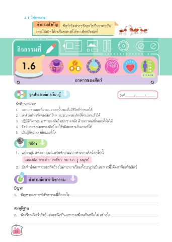 3. ปฏิบัติกิจกรรม อาหารของสัตว์ อย่างรวมพลัง ด้วยความมุ่งมั่นและตั้งใจได้
