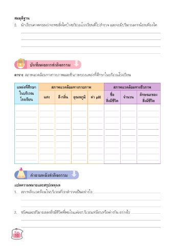 โรงเรียน แสง สี-กลิ่น อุณหภูมิ ค่า pH สิ่งมีชีวิต จำานวน สิ่งมีชีวิต