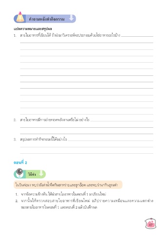 1. จากข้อความข้างต้น ให้นำาสายใยอาหารในตอนที่ 1 มาเขียนใหม่